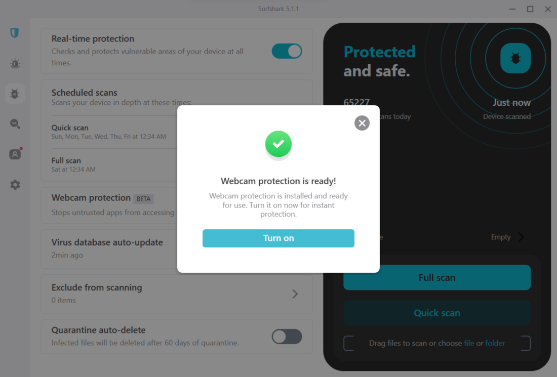 The Surfshark webcam protection feature protects you from potential hackers accessing your webcam.
