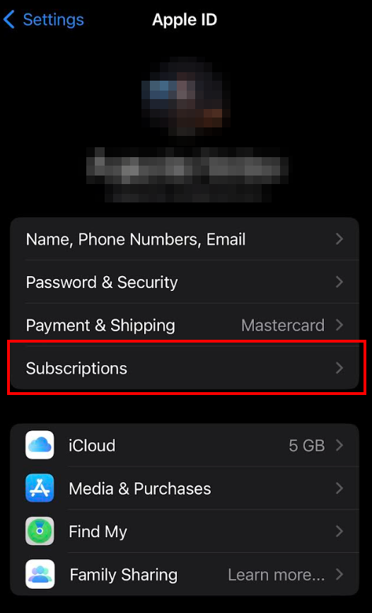 - Tap on Subscriptions, locate the Surfshark subscription and tap resume.