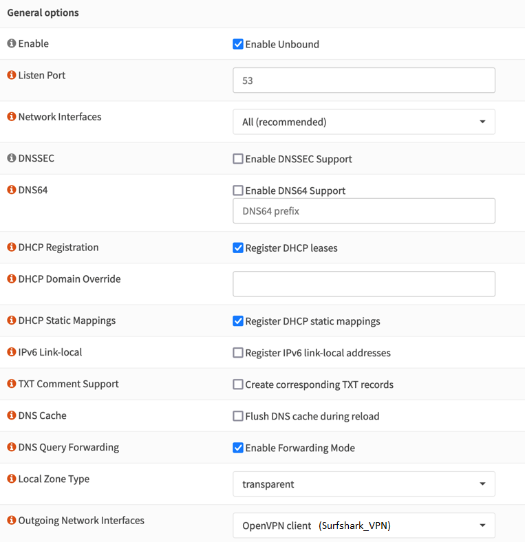 11. Navigate to Services -> Unbound DNS -> General and fill in the following information: