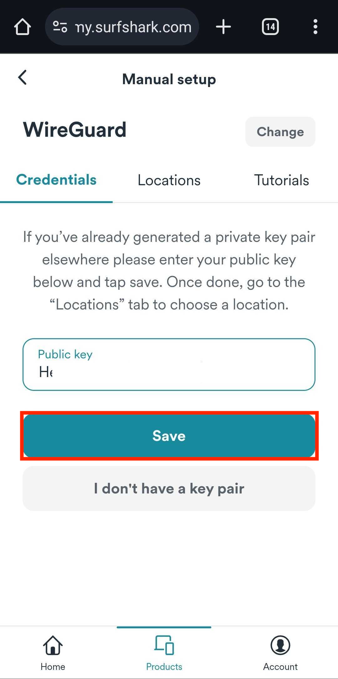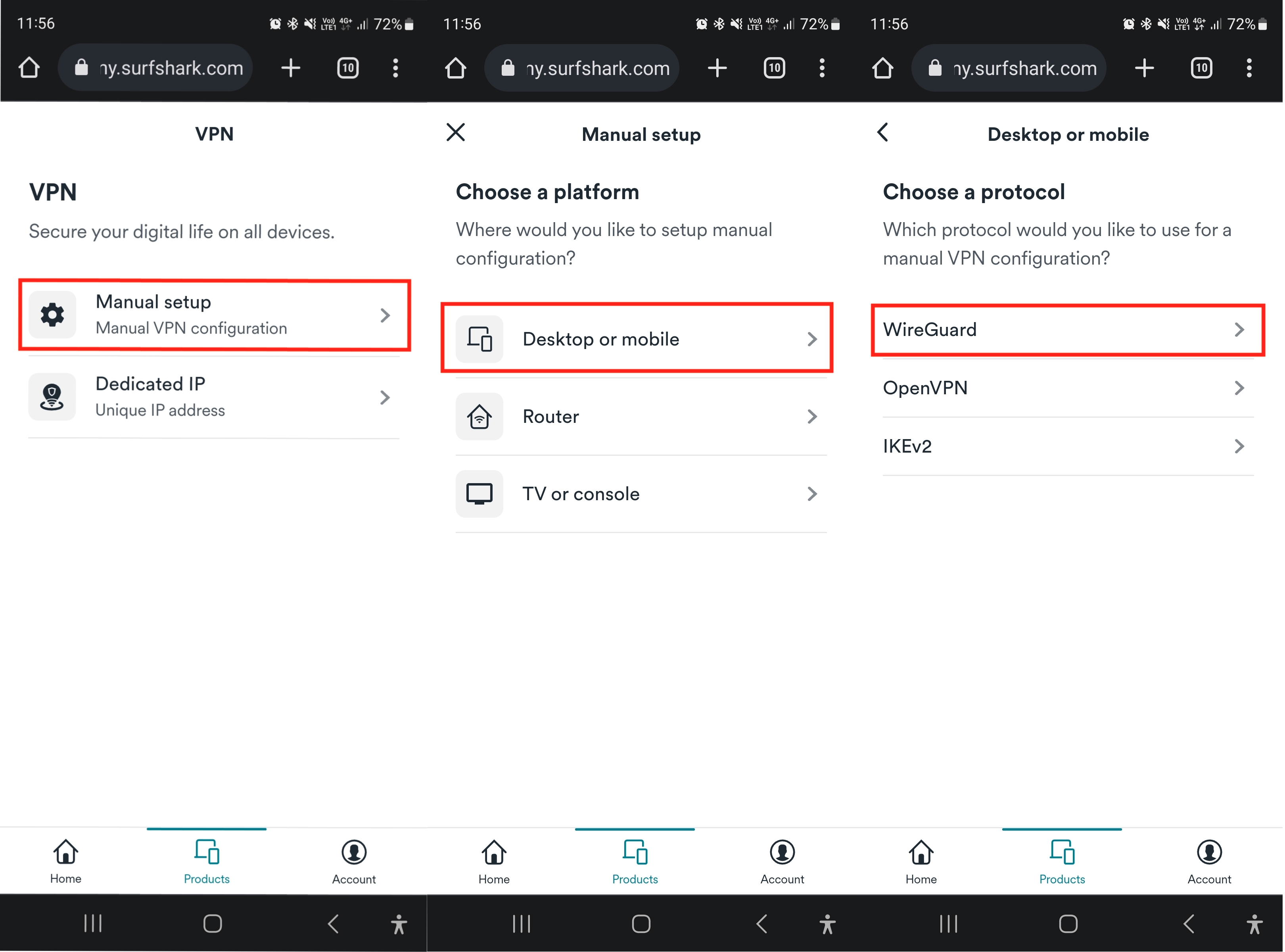 Go to Surfshark's login page and log in. Then, click Products > VPN.