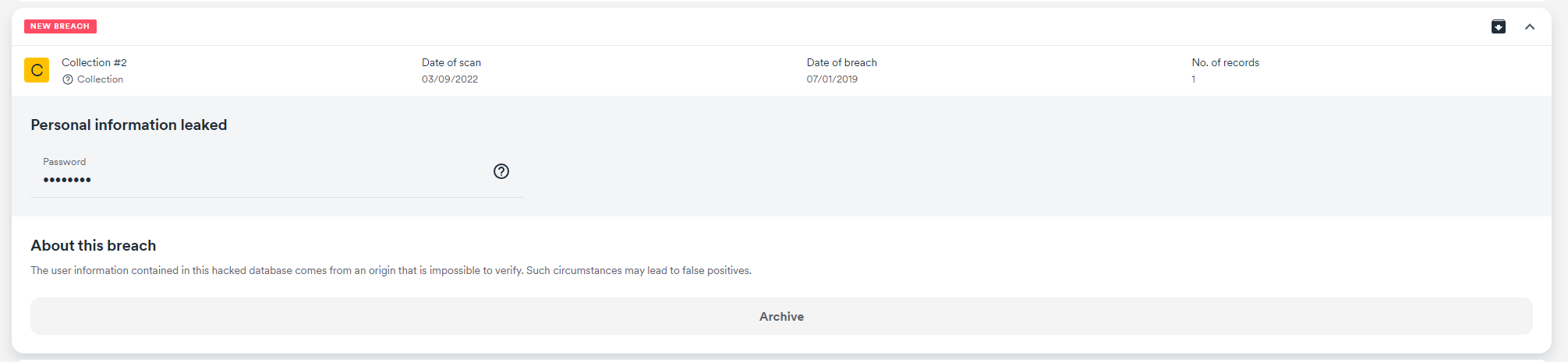 Once you have taken all precautions, you can press the Archive button. This will move the breaches into the archive folder, where you can access them later.