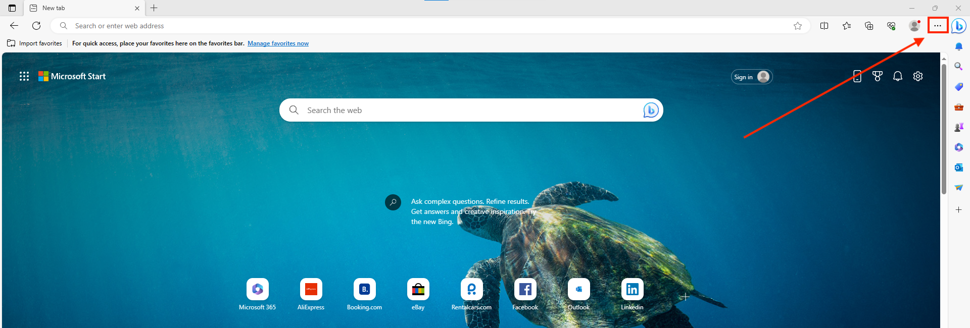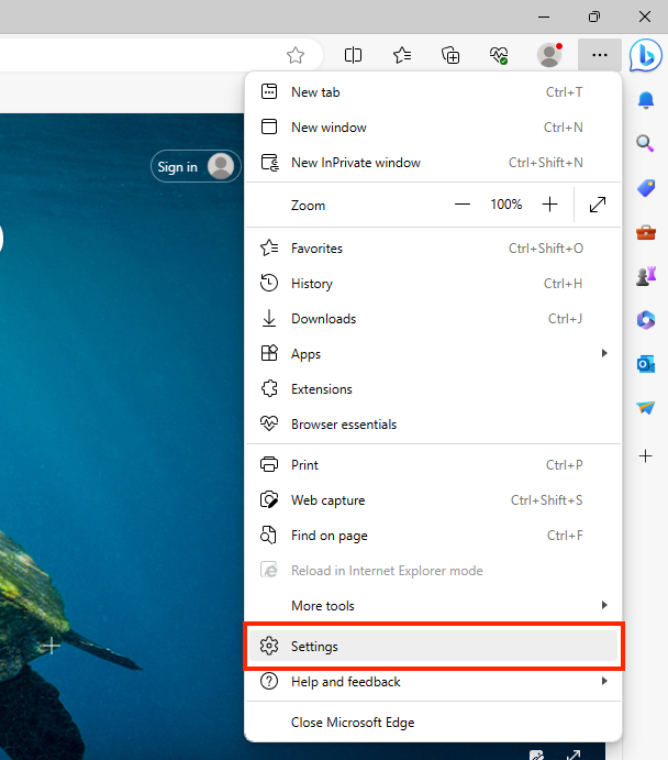 - Click the three dots at the top right of the browser.