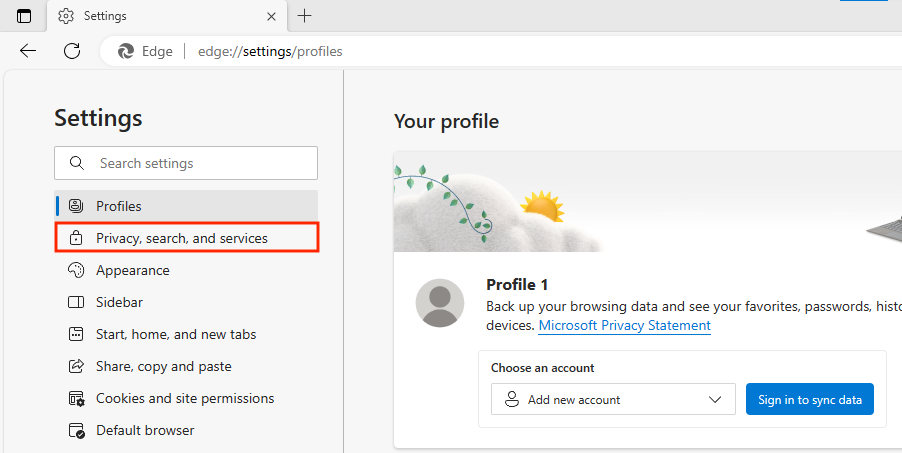 - Select Privacy, Search, and Services.