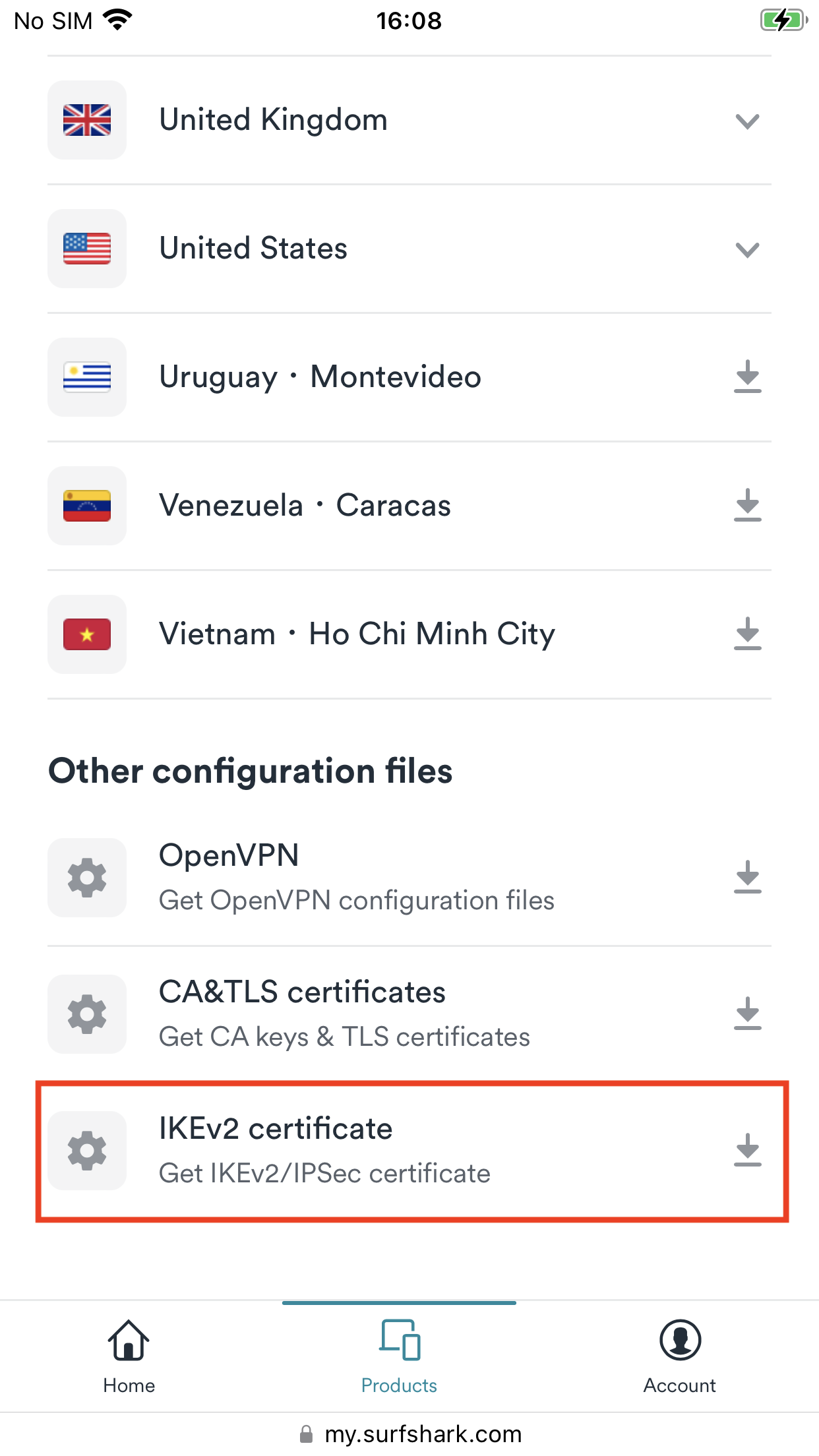 Scroll down to the bottom of the Locations tab. Tap on the IKEv2 certificate to start the download.