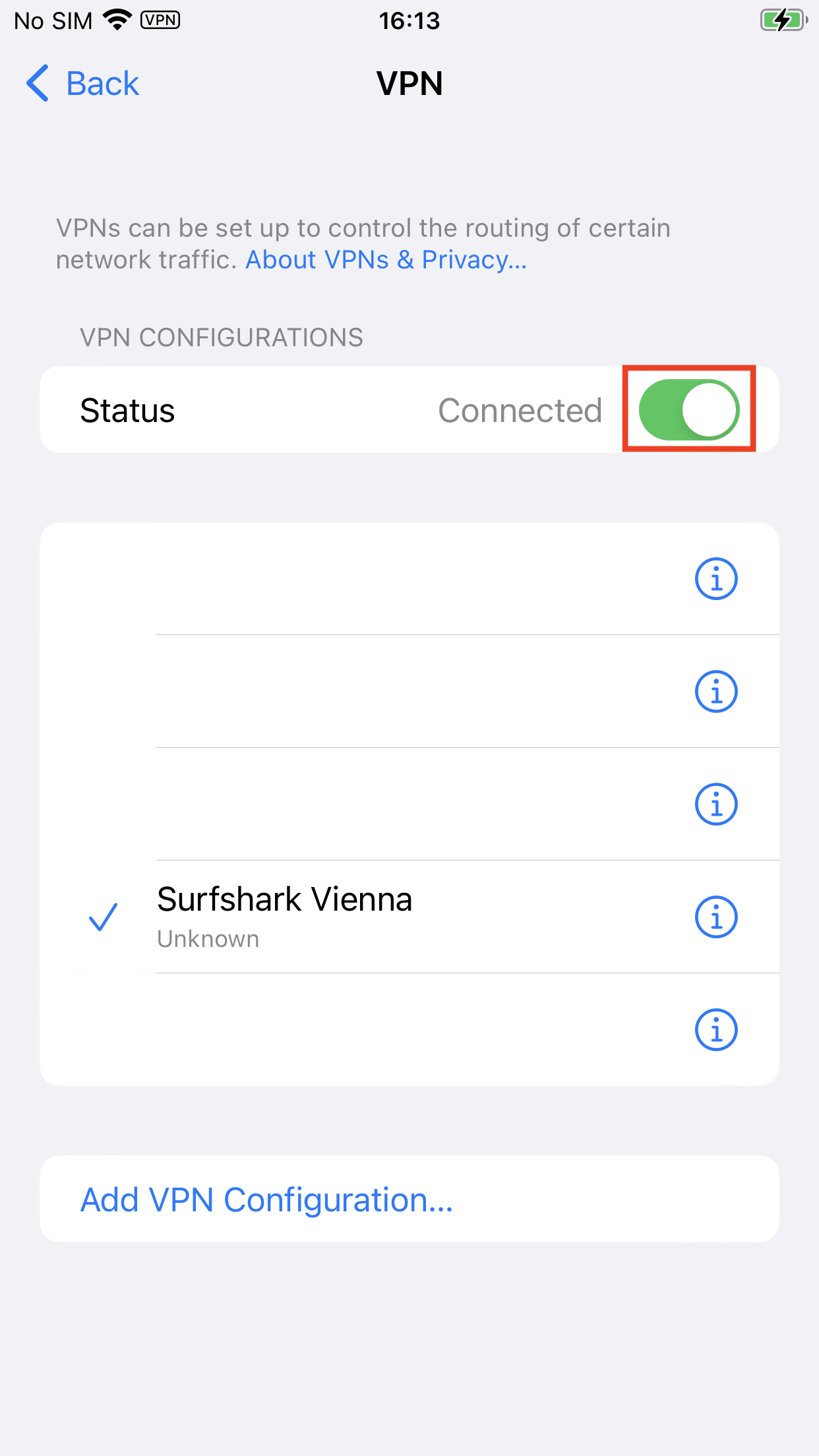 From now on, you will find the configured VPN profile in the VPN tab that you will always find in Settings > General.