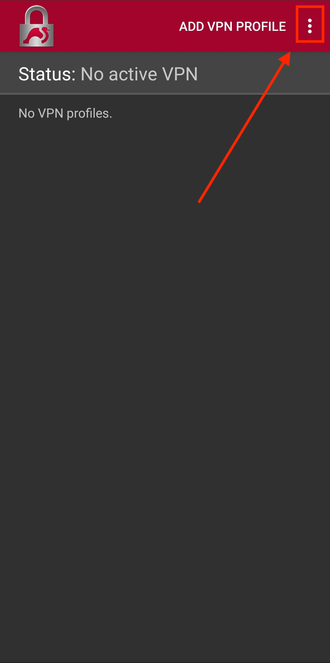 2. Once the installation ends, open the strongSwan VPN Client application and tap on three vertical dots in the top right corner.