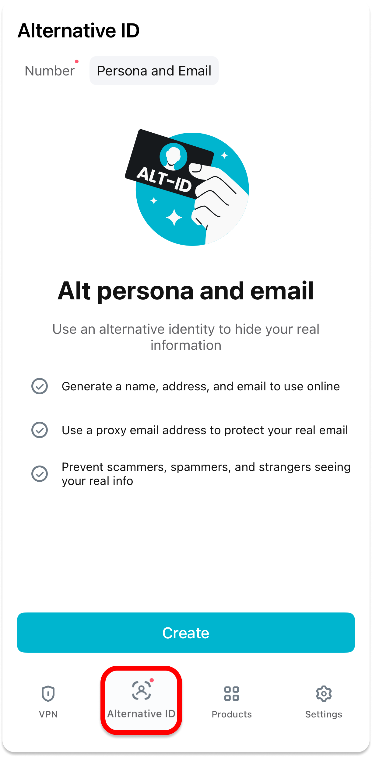 • Alternative ID – a tool that generates a brand-new identity and an email to use online. Provides name & email protection, reduces spam emails, and more.