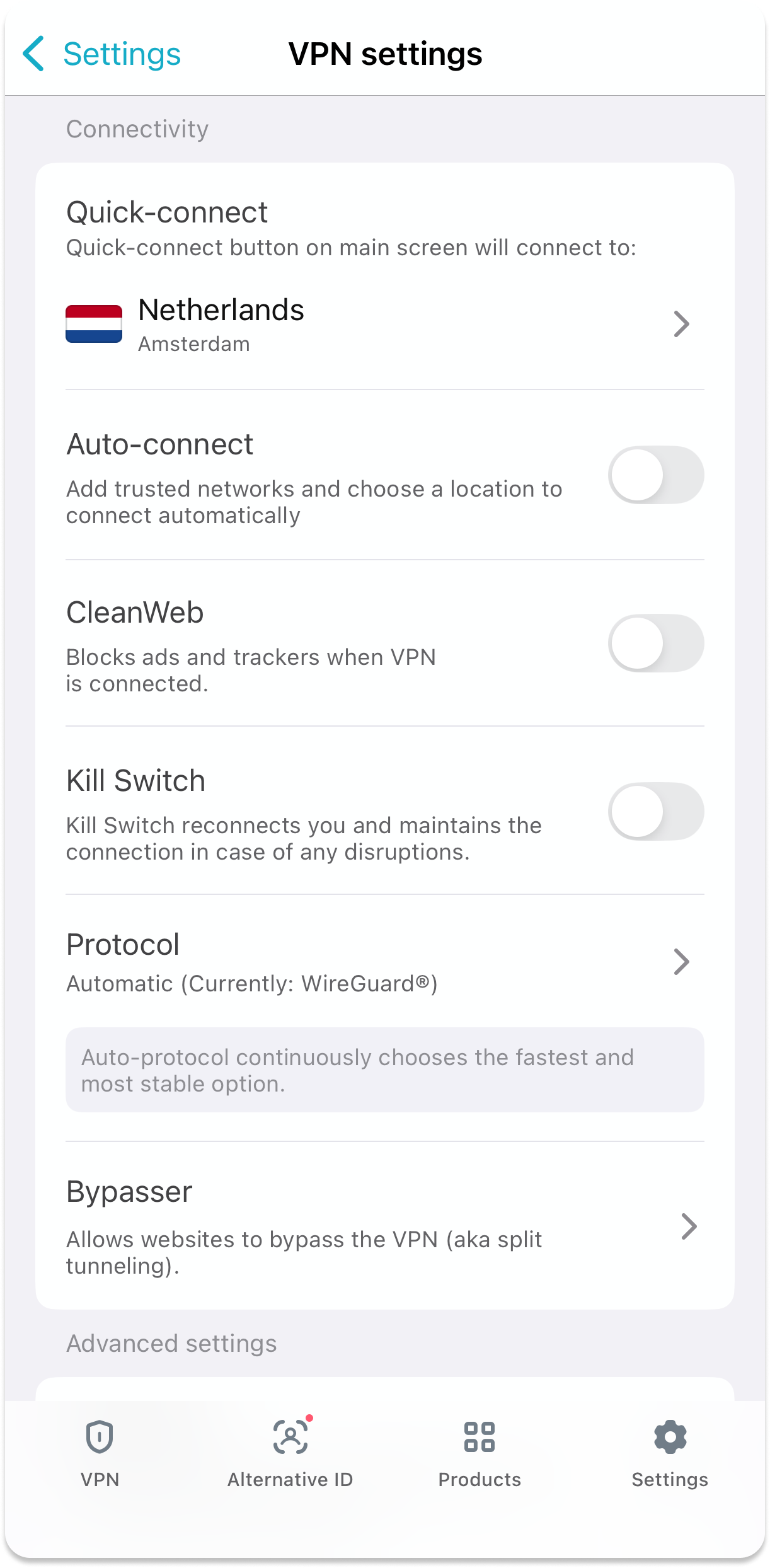 • Enable the Surfshark Kill Switch feature. It protects you from unexpected VPN disconnections.