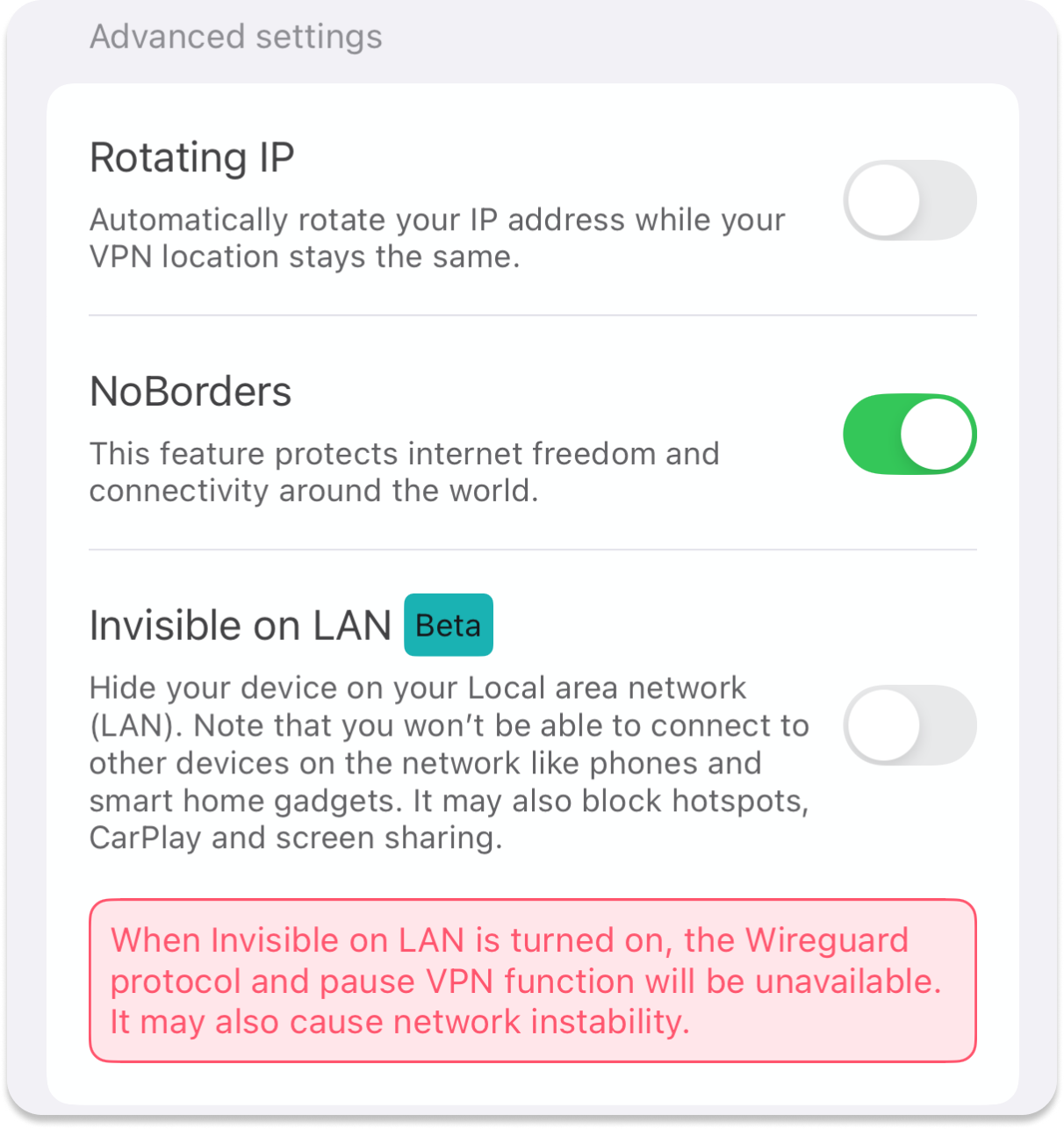 • Enable Rotating IP. This feature changes your IP address to the chosen location every 5 to 10 minutes without disconnecting from the VPN.