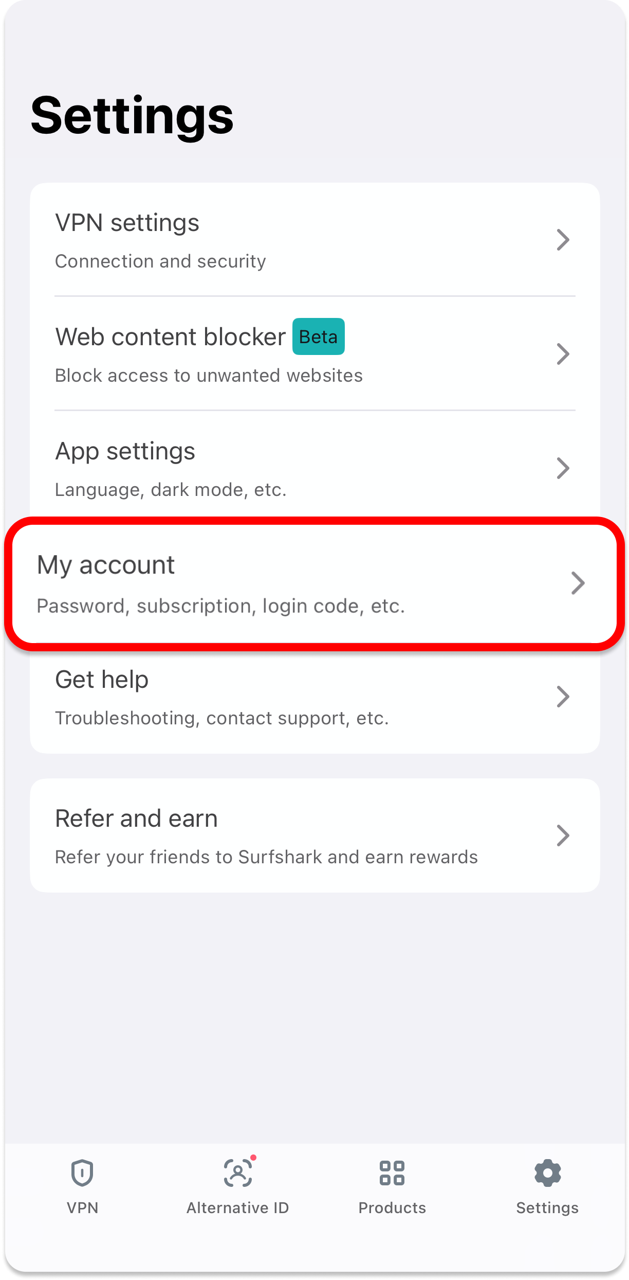Open the Products tab in your Surfshark app, where you will find two Surfshark products. To use them, you have to have an active Surfshark ONE subscription: