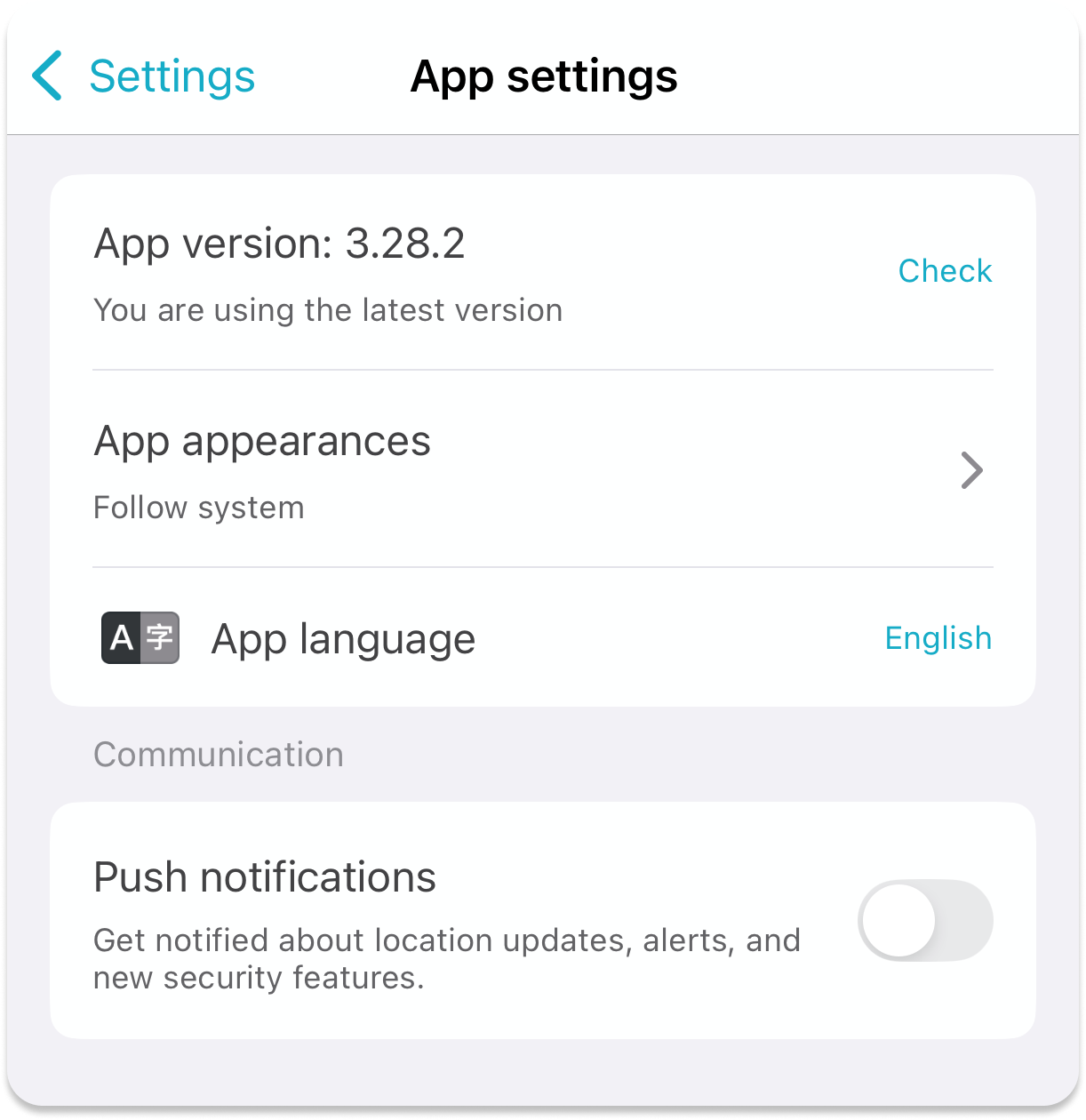 • Change the App's appearance (dark, light, or one that follows your device's theme).