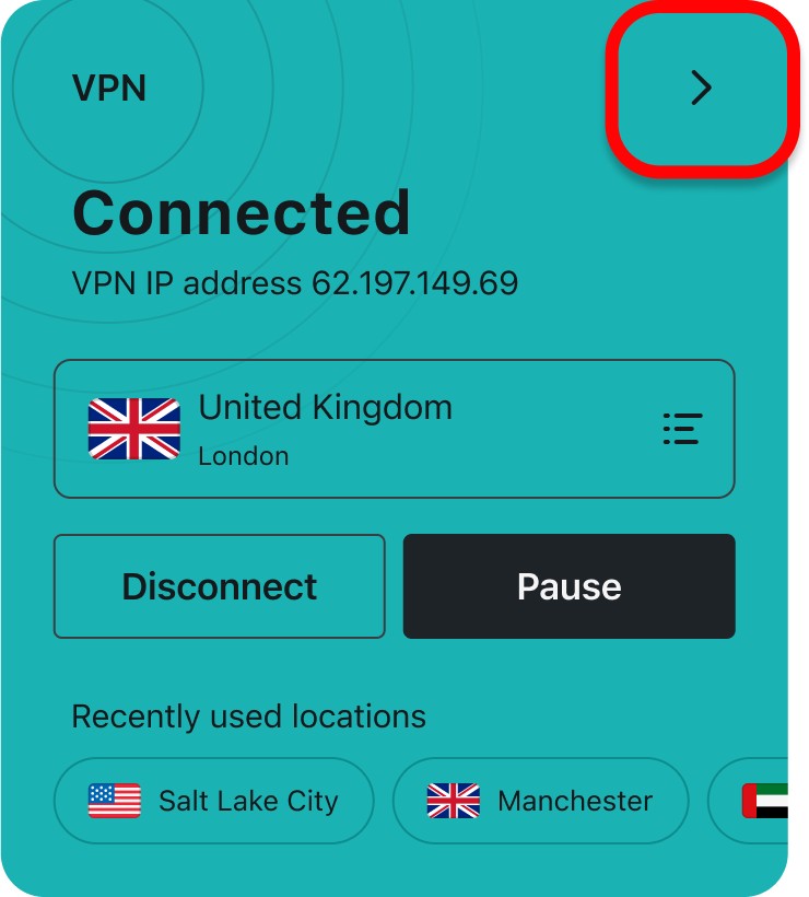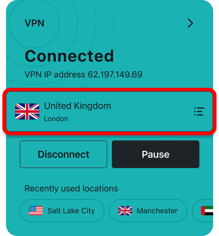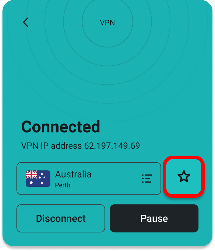 In order to disconnect from the VPN, tap the disconnect button. To temporarily pause the connection, tap pause.