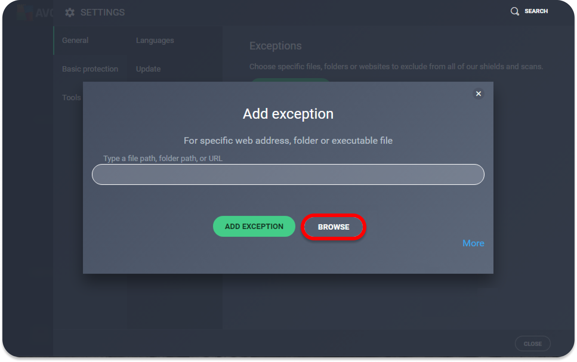 To make an exception for Surfshark in the AVG Antivirus settings, follow these steps: