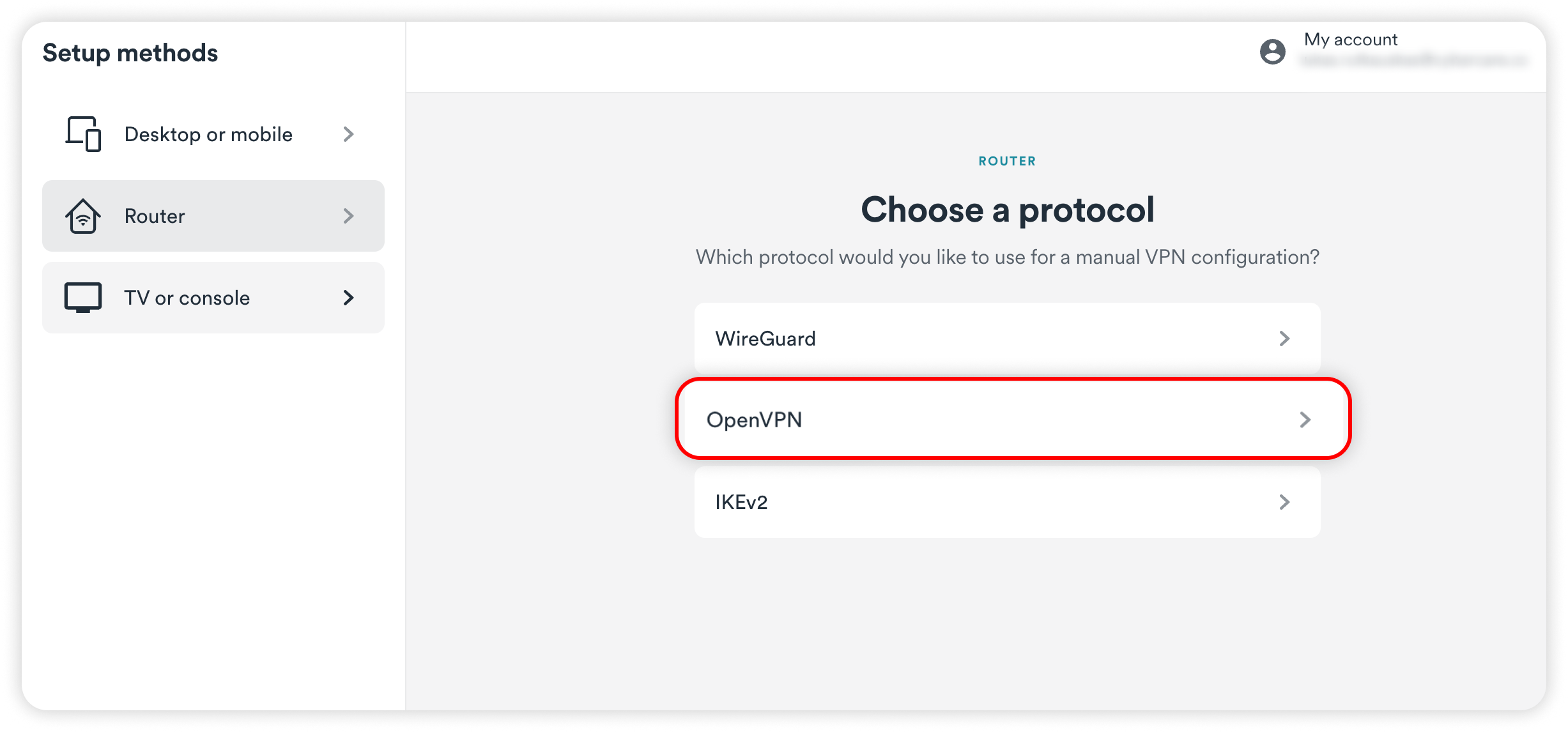 Choose the OpenVPN protocol.