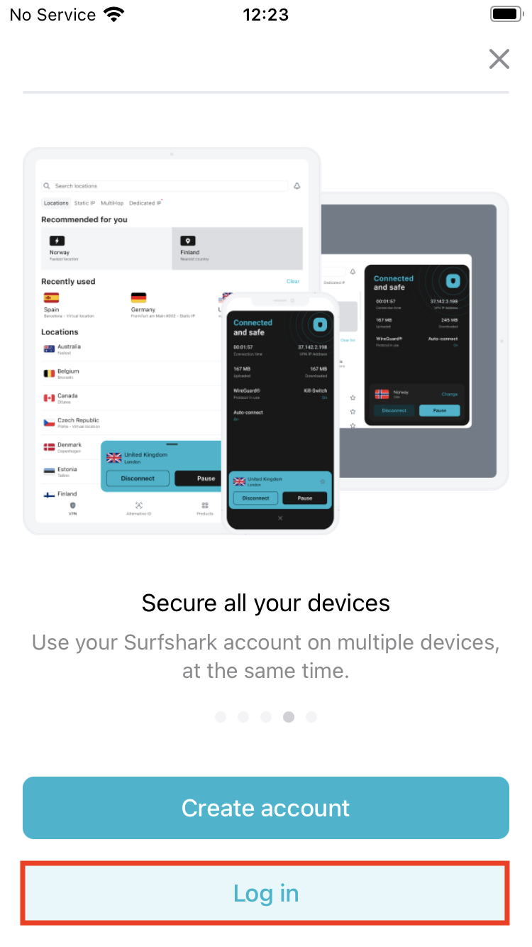 - Launch the Surfshark app and press Log in.