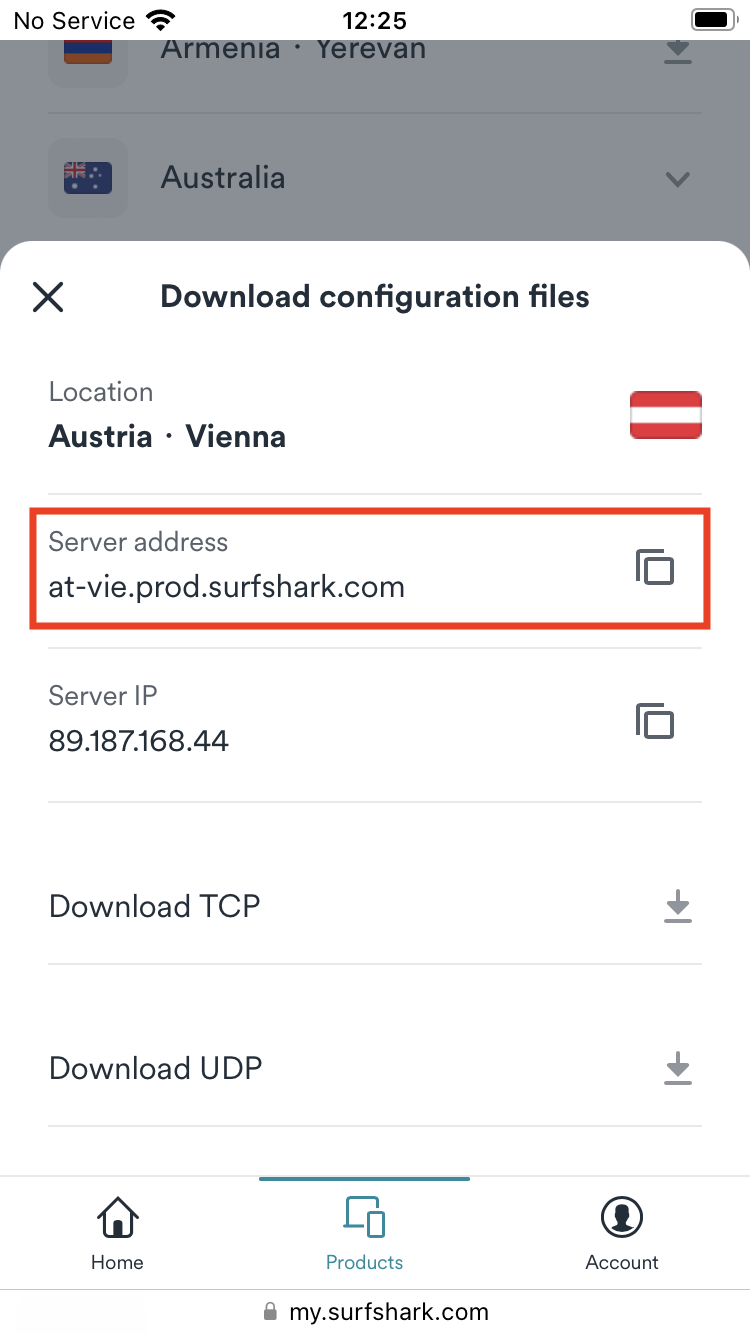 Service username: Surfshark service username (refer to Get your credentials section in this article)Service password: Surfshark service password (refer to Get your credentials section in this article)