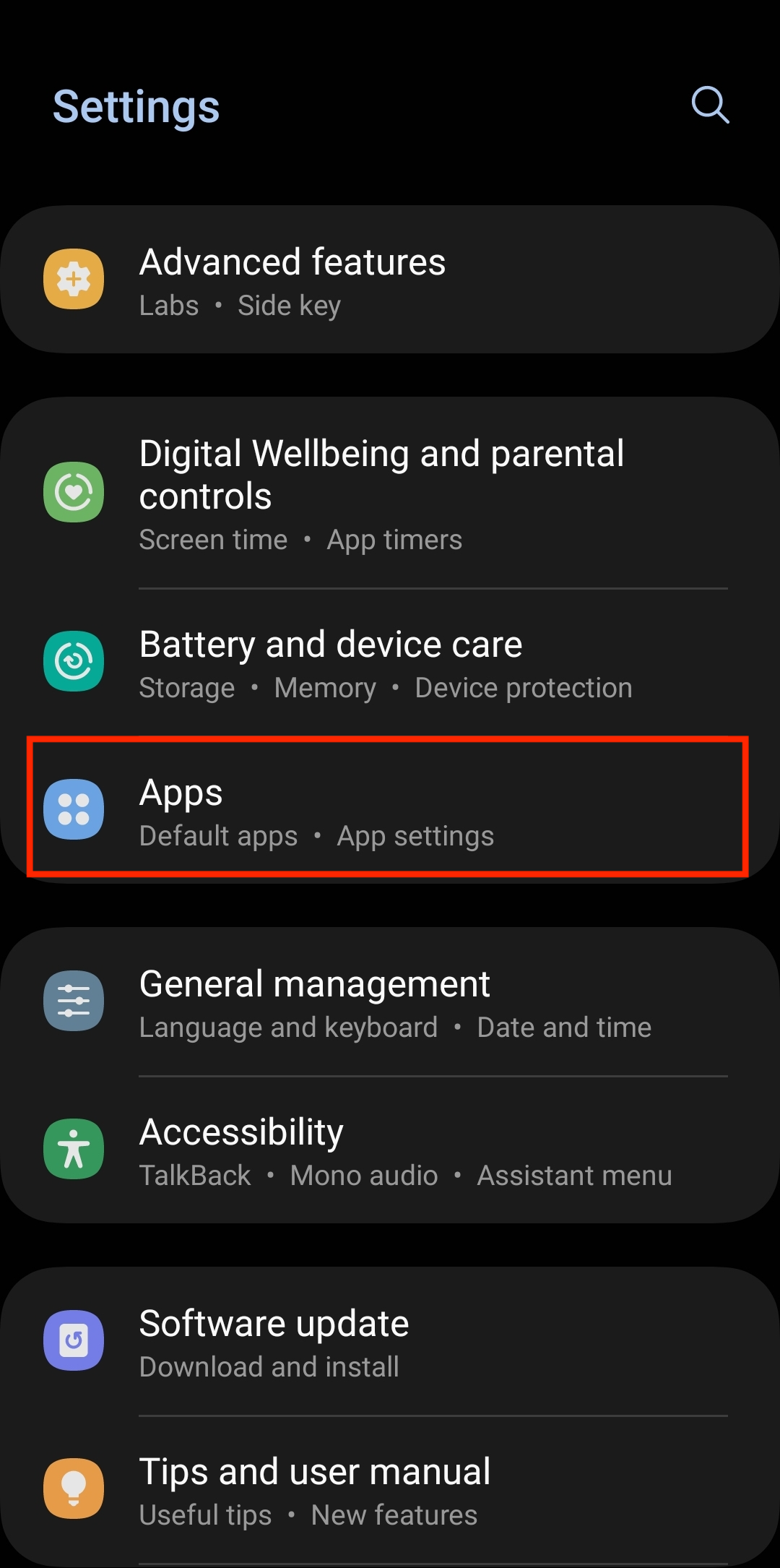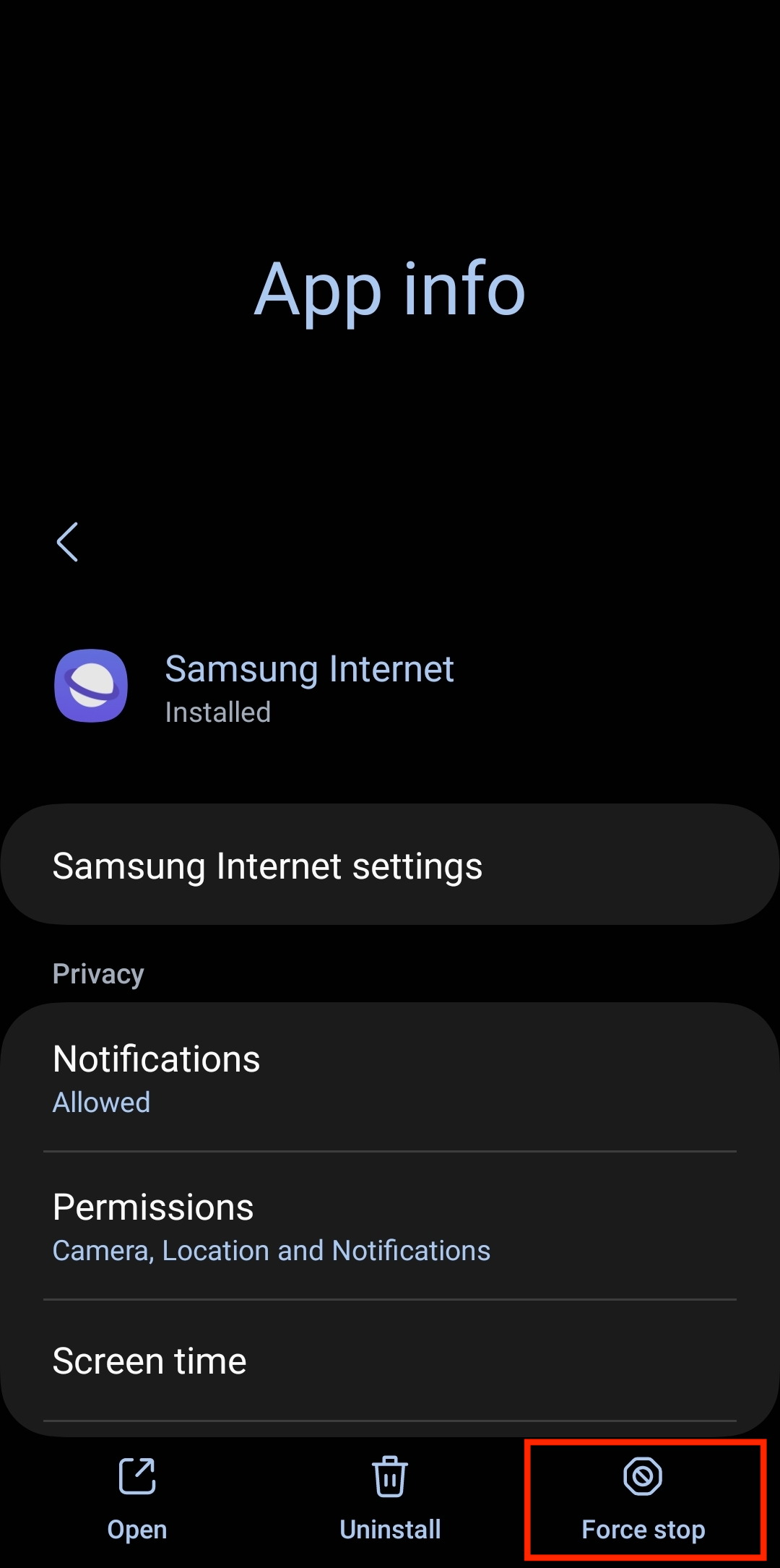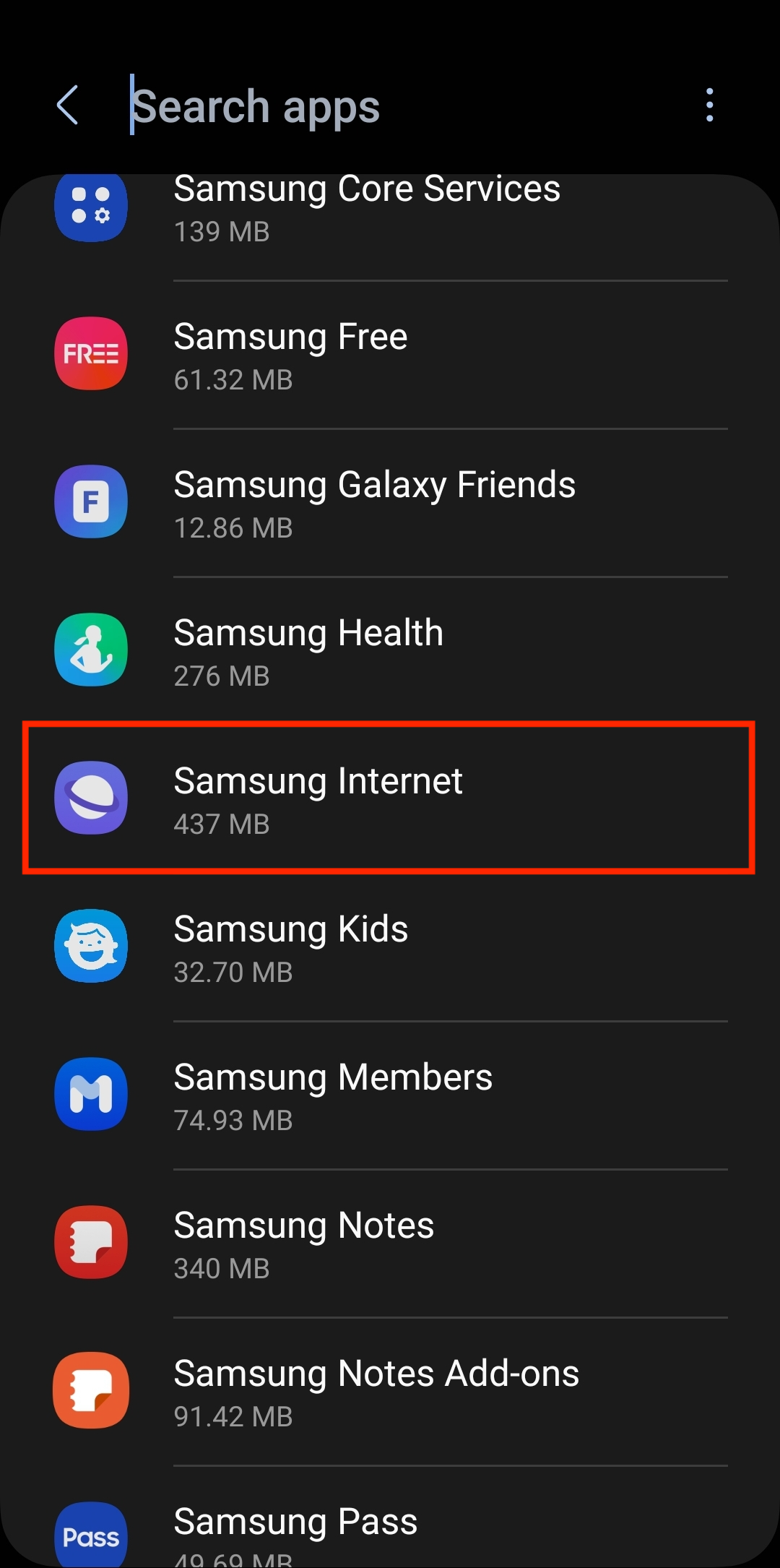 - On the next window, look for the application you wish to clear the cache for and tap on it. In our case, it is Samsung Internet.