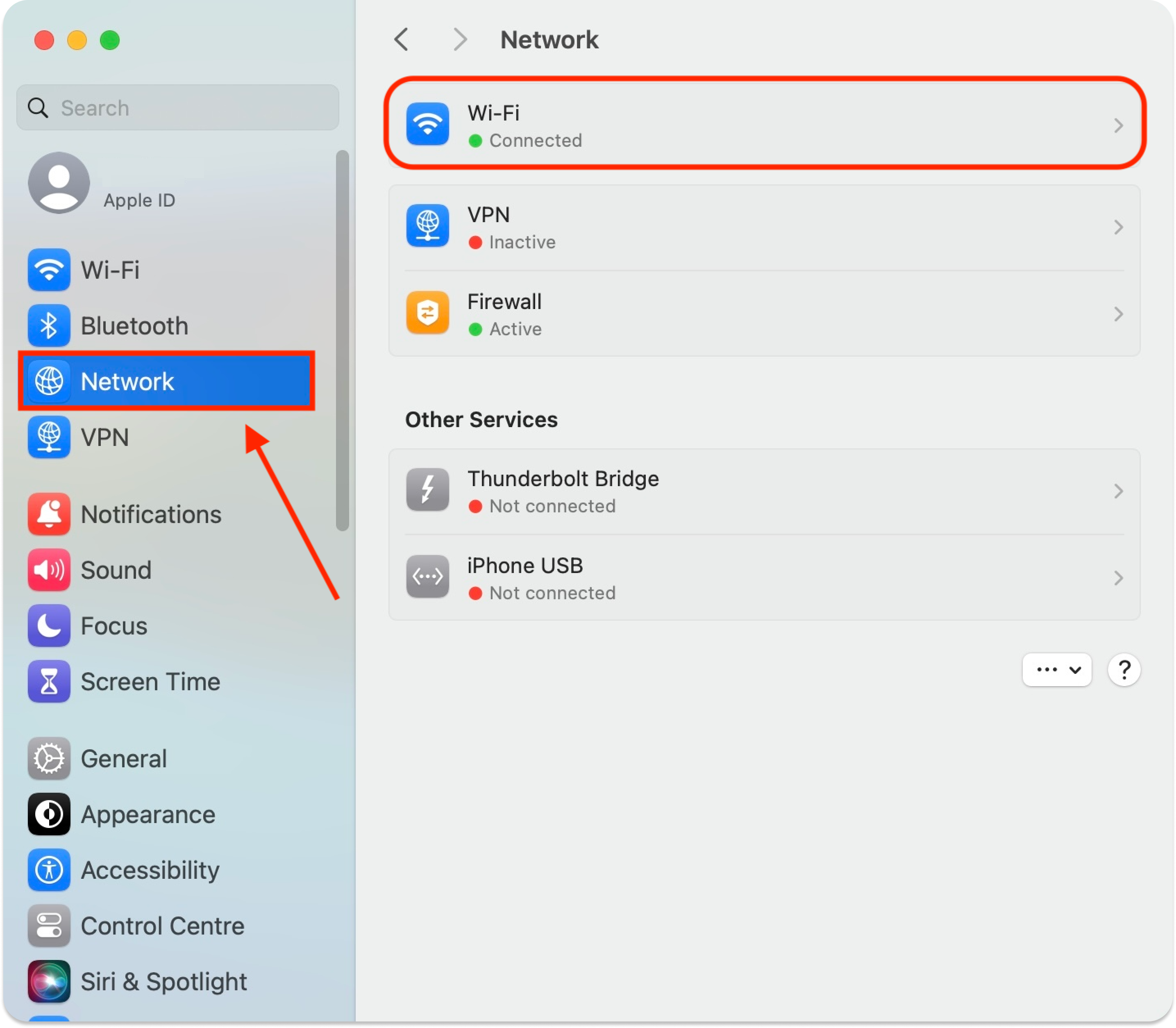 Select Network on the left. Afterward, click on the network you wish to customize DNS addresses on.