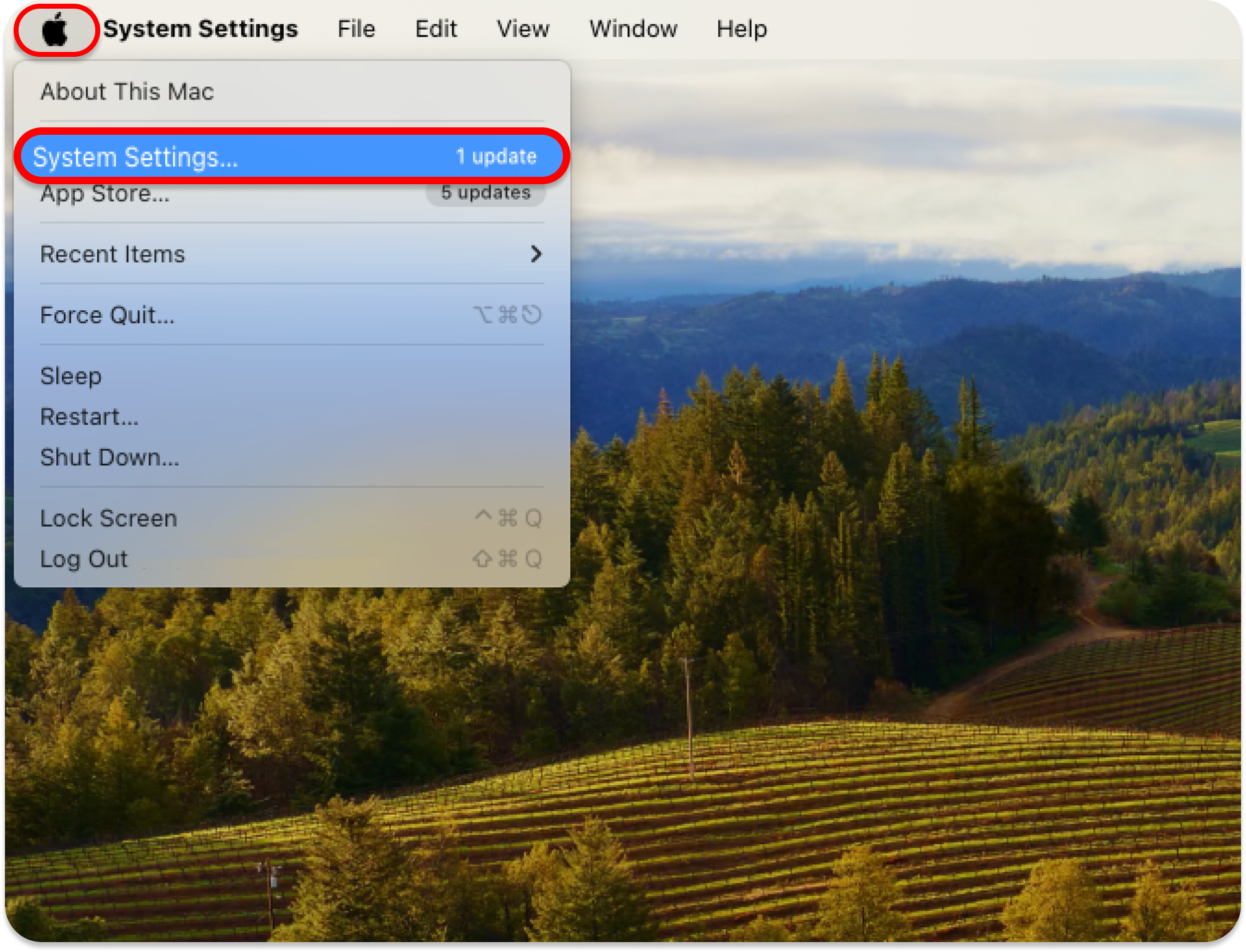 Click the System Settings icon in the Dock, or choose Apple menu > System Settings.