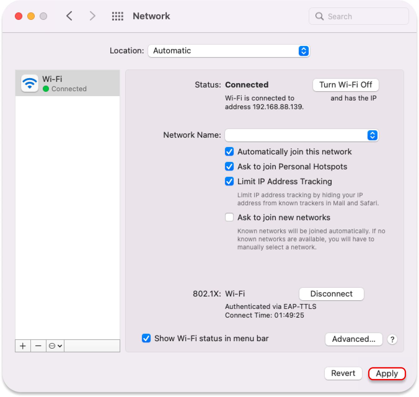 Select the network you wish to configure your DNS on. In this case, you will configure the main Wi-Fi networks' DNS. After selecting the network, click on Advanced...
