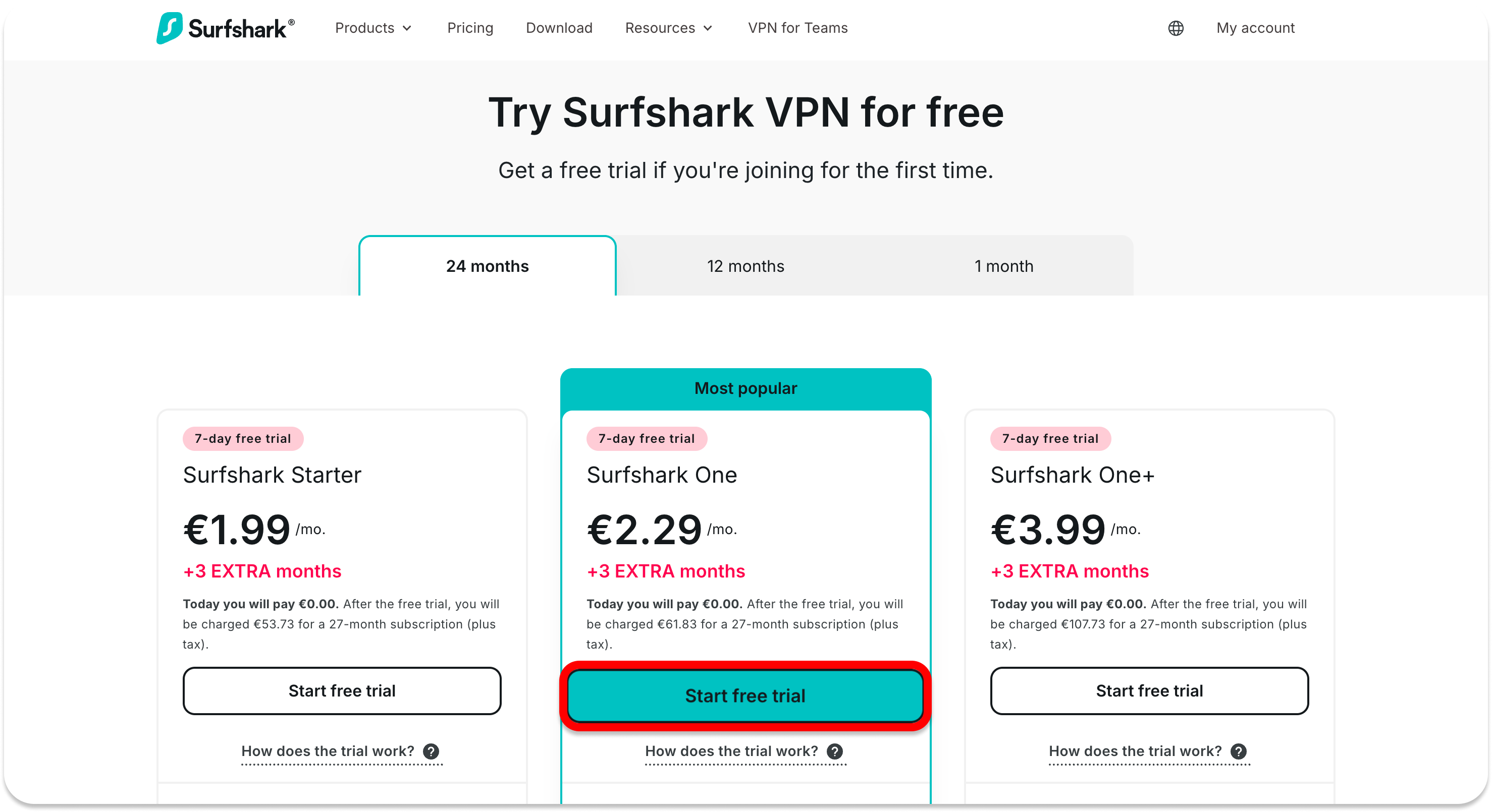 Select any 12 or 24-month duration plan and click Start free trial.
