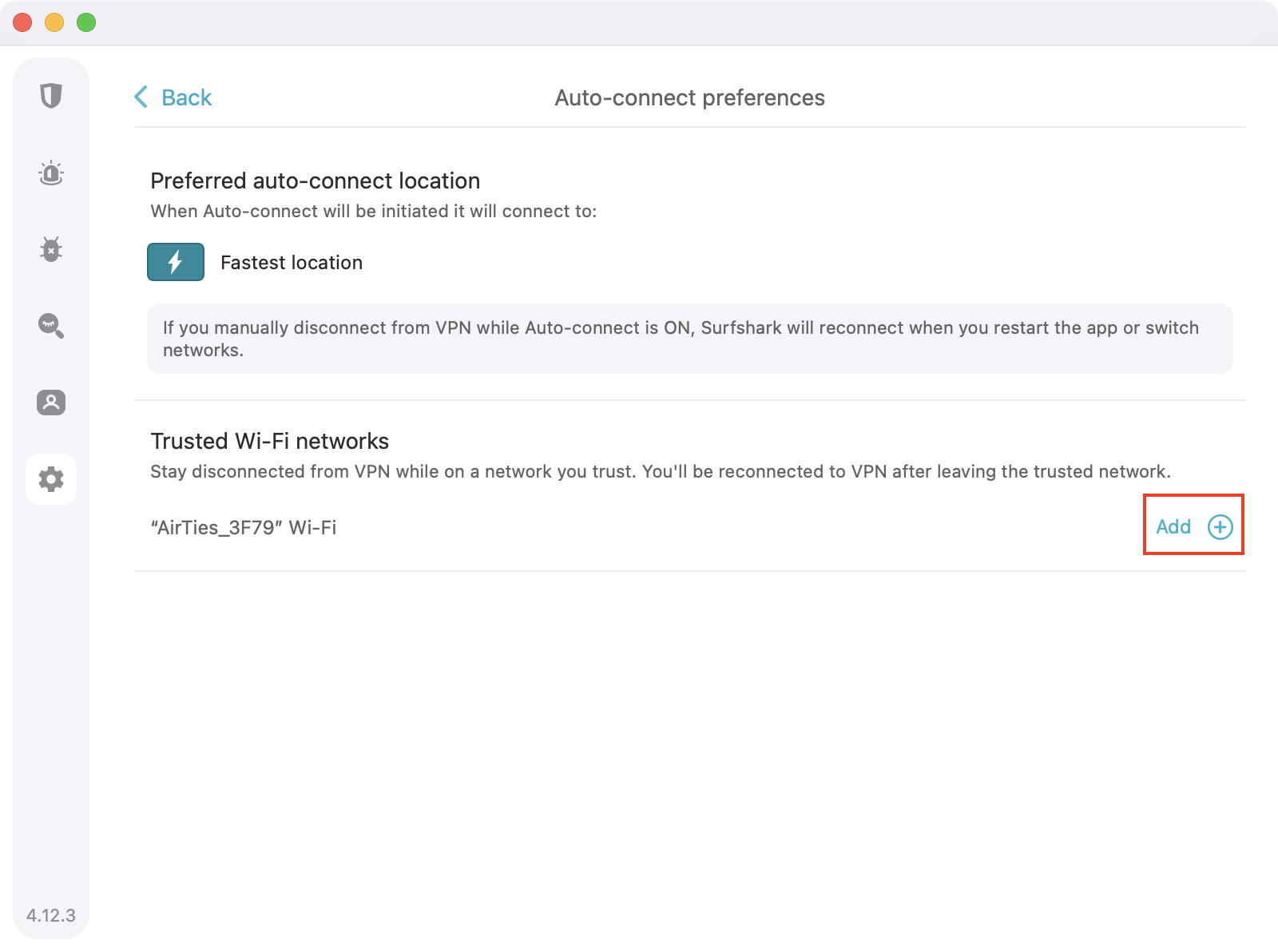 Let's say you are out in town on your mobile network, connected to Surfshark. You come back home, and you connect to your home network, which you have added to the list of trusted networks. Once you connect to this trusted network, your VPN will disconnect automatically.