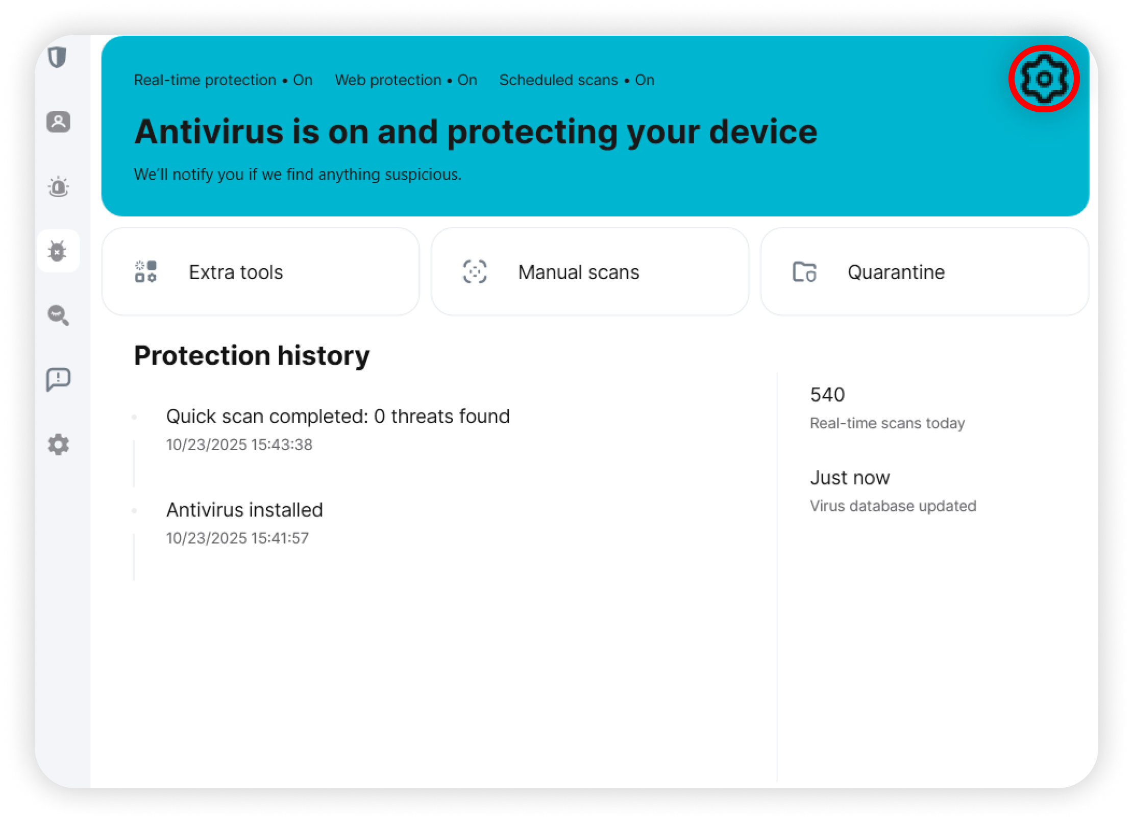 If you click the cogwheel on the top right, you will find the antivirus settings: