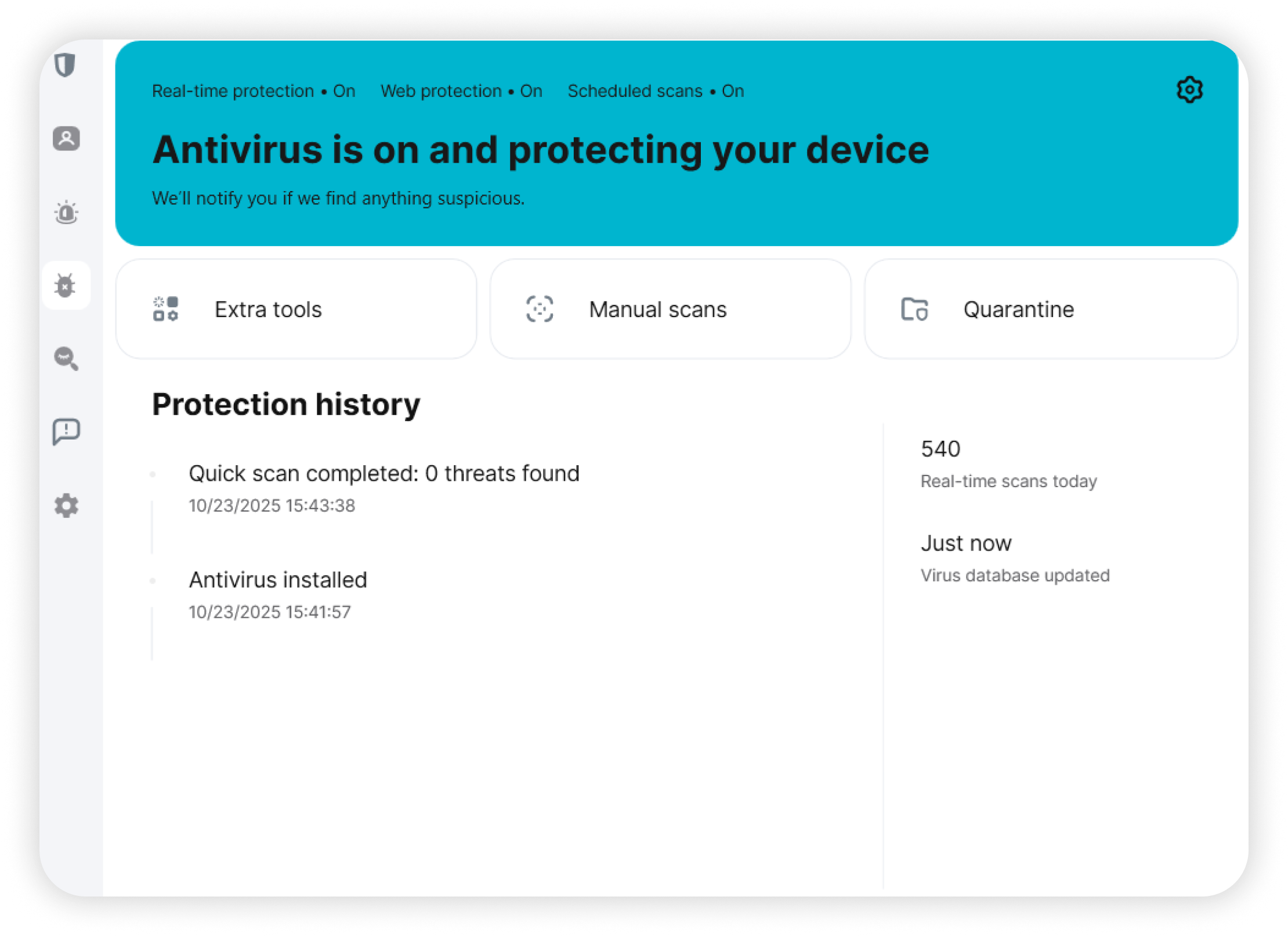 - After the initial scan, you'll find yourself in the main dashboard of the Surfshark Antivirus.