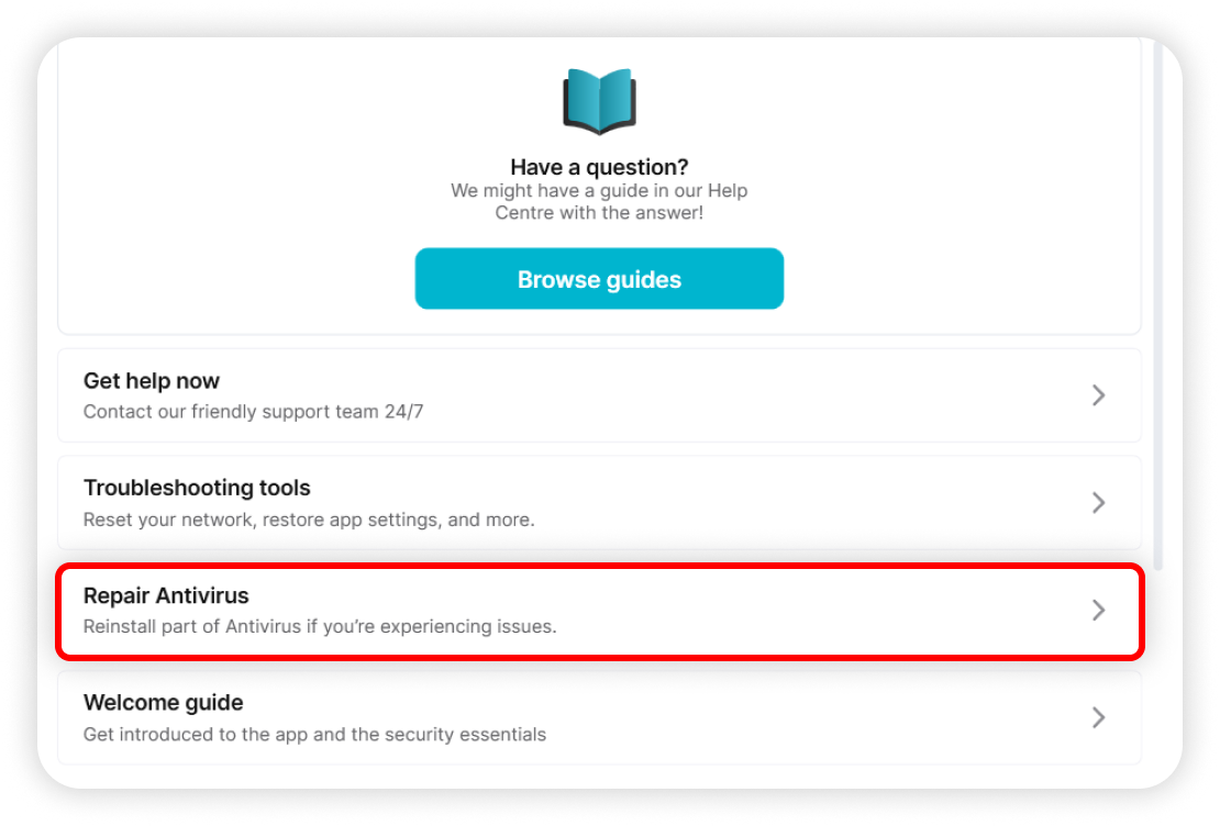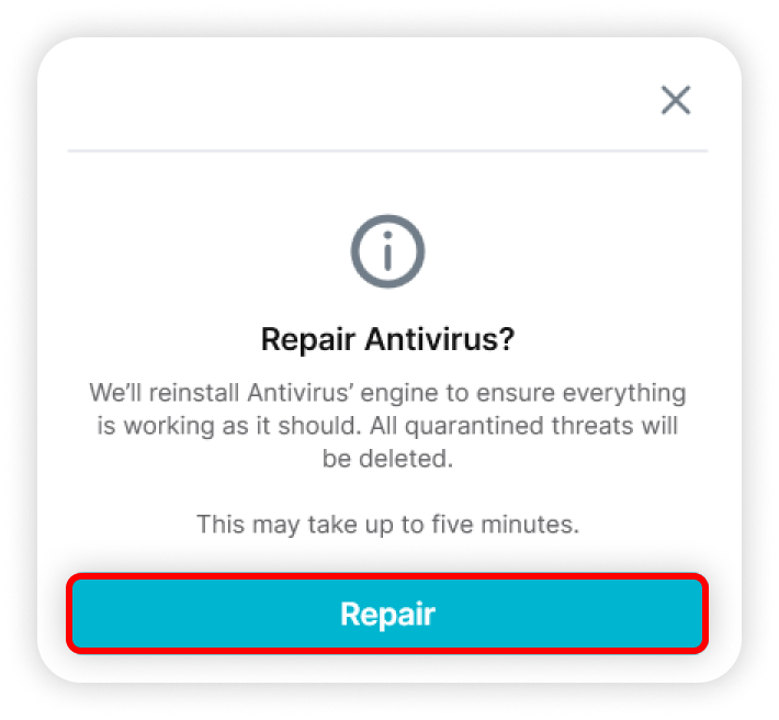 Once the repair tool is finished, your Surfshark Antivirus will be ready for use.