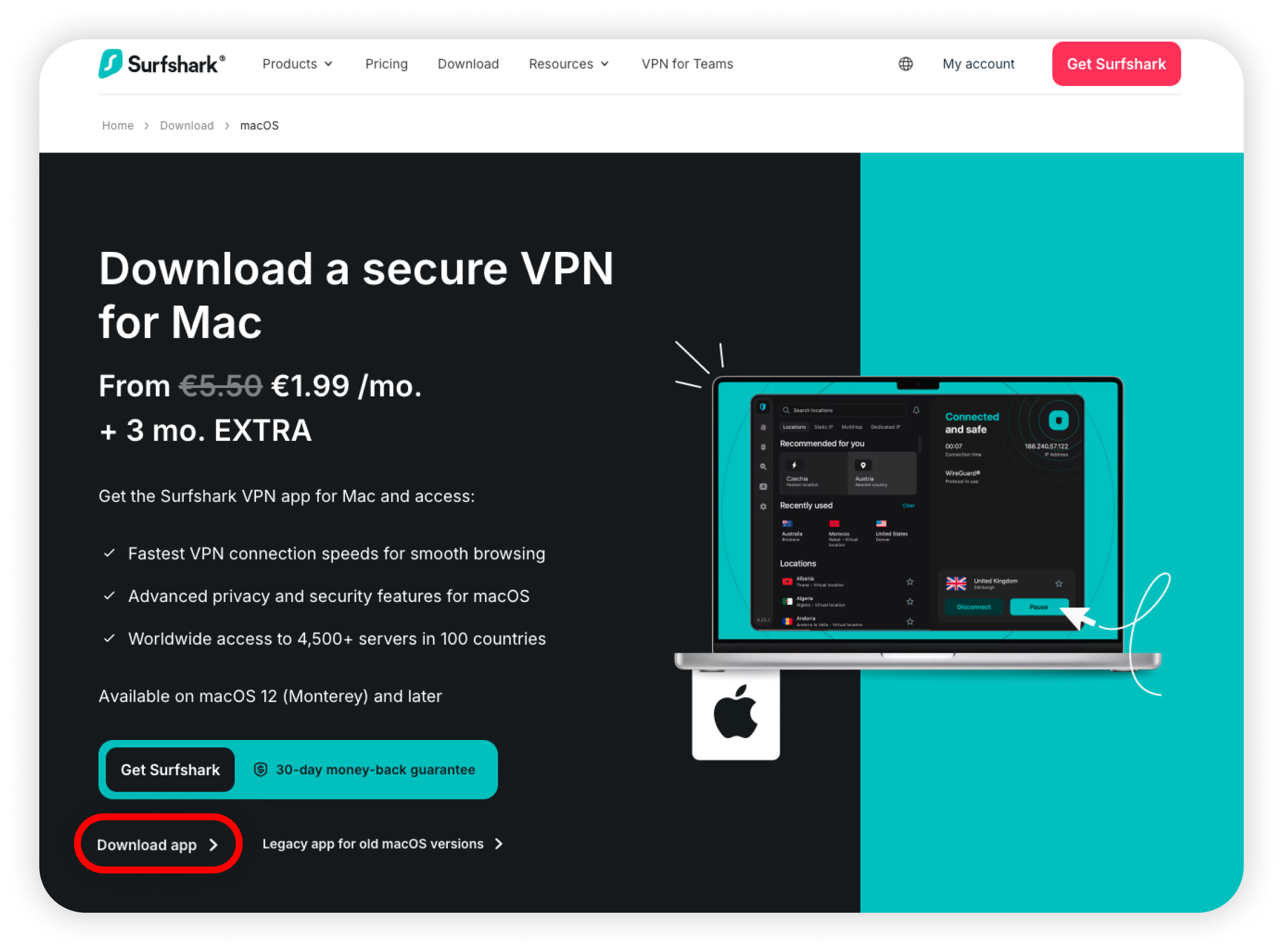 1. Go to the Surfshark download page for macOS and download the .DMG version of the Surfshark app:
