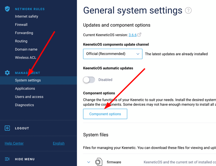 - Navigate to System Settings > Component options