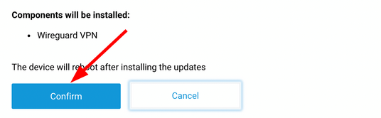 In the pop-up that comes up, click ‘Confirm’ to continue with the installation. After it is done, reboot the router.