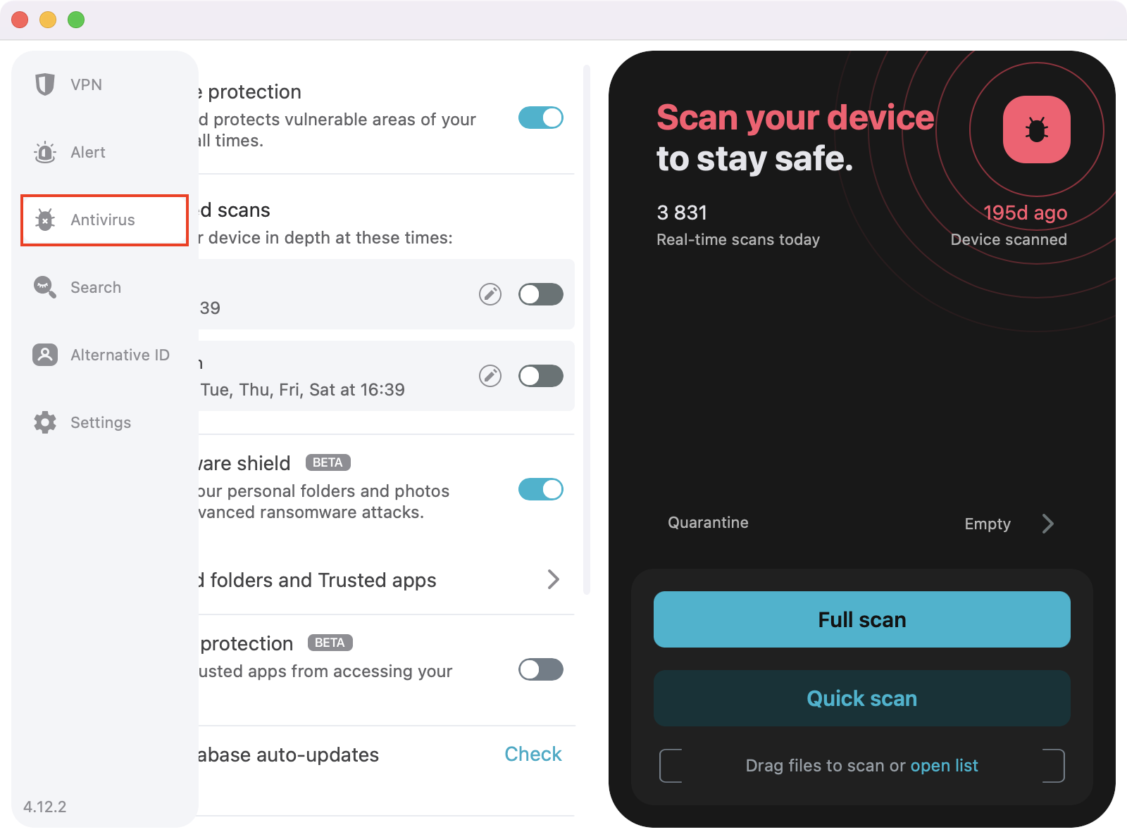 1. Open the Surfshark application and navigate to the Antivirus tab.